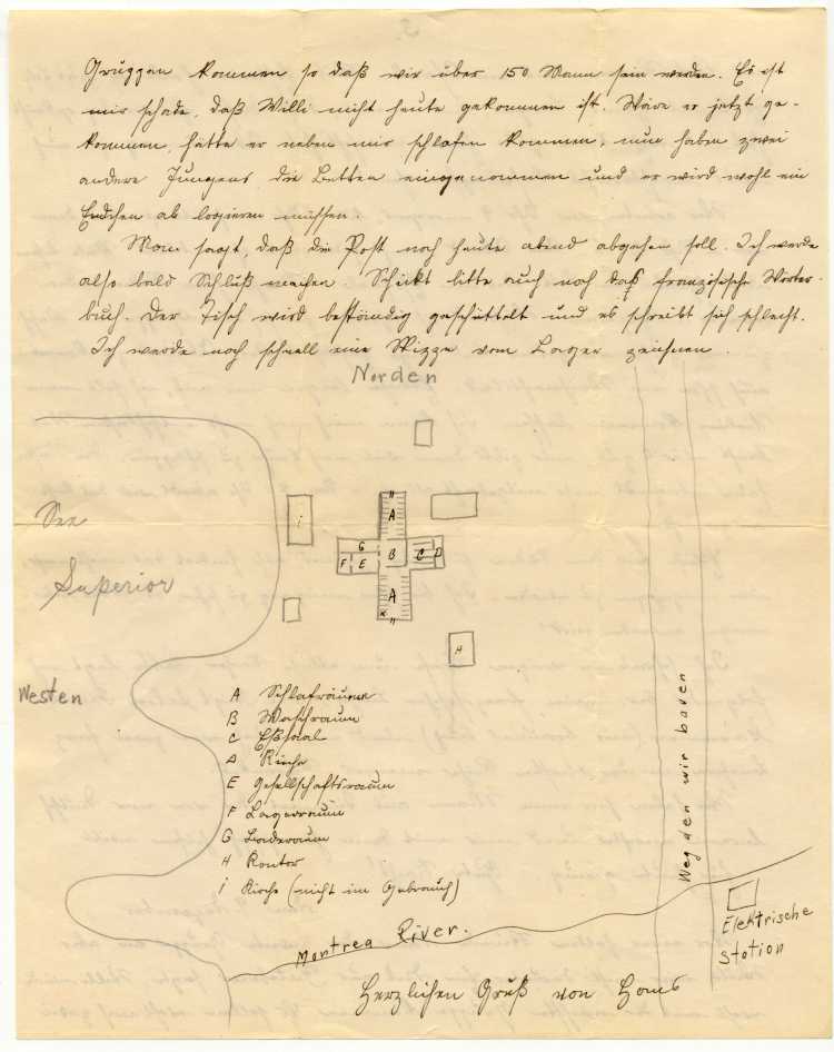 Map of camp at Montreal River in letter from John H Enns Dec 8 1942 p 4